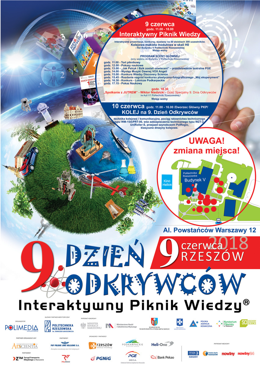 9 czerwca na Politechnice Rzeszowskiej odbędzie się 9. Dzień Odkrywców - Interaktywny Piknik Wiedzy. To cykliczna impreza, której celem jest popularyzacja nauki i techniki w formie rodzinnego pikniku. Politechnika Rzeszowska jest głównym partnerem merytorycznym tego wydarzenia.