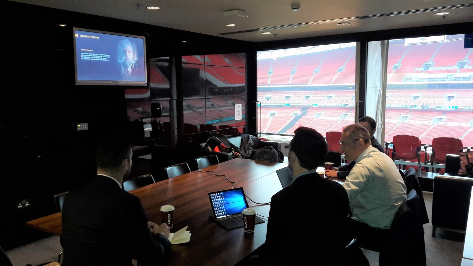 W spotkaniu uczestniczyli Dyrektor Marketingu i Komunikacji UCFB James Mckeown, Dyrektor UCFB ds. Rekrutacji Nick Wilkinson, a także Dyrektor Zarządzający Arcom IT Ltd. Shahid Azeem, który jest równocześnie Prezesem Aldershot Town Football Club Ltd. Politechnikę Rzeszowską reprezentowali, oprócz prorektora ds. kształcenia dr. hab. inż. Grzegorza Masłowskiego, prof. PRz, pracownicy Centrum Fizjoterapii i Sportu: zastępca dyrektora ds. badań i rozwoju dr Ewa Polak oraz mgr Przemysław Biskup. W trakcie spotkania prorektor Grzegorz Masłowski przedstawił Politechnikę Rzeszowską, w tym również plany uruchomienia kierunku zarządzanie w sporcie na Wydziale Zarządzania oraz specjalności inżynieria sportowa na kierunku inżynieria medyczna realizowanego na Wydziale Matematyki i Fizyki Stosowanej. Podkreślił również, iż działania prowadzone aktualnie na Politechnice Rzeszowskiej w obszarze sportu wpisują się w cele strategiczne województwa podkarpackiego w obszarze inteligentnej specjalizacji wiodącej „Jakość życia”, zgodnie z którą powinien być realizowany rozwój innowacji nakierowany na dobro społeczne. Omówiono również możliwości współpracy w zakresie wymiany studentów oraz wspólnych projektów. Podobnie jak w Surrey University przedstawiciele Uczelni na Wembley również wyrazili chęć podpisania umowy o współpracy z Politechniką Rzeszowską.