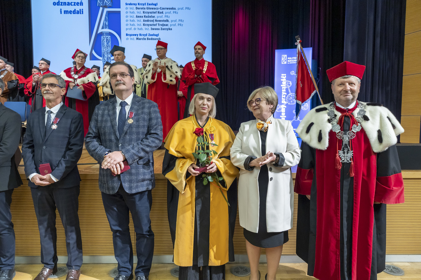 Złoty Krzyż Zasługi otrzymał prof. dr hab. inż. Tomasz Siwowski. Srebrnym Krzyżem Zasługi zostali uhonorowani: dr inż. Dorota Głowacz-Czerwonka, prof. PRz, dr hab. inż. Krzysztof Kud, prof. PRz, dr inż. Anna Kuźniar, prof. PRz, dr hab. inż. Andrzej Nowotnik, prof. PRz, dr hab. inż. Krzysztof Trojnar, prof. PRz, prof. dr hab. inż. Iwona Zarzyka, natomiast Brązowym Krzyżem Zasługi dr inż. Marcin Bednarek.