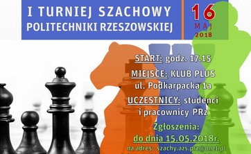 Centrum Fizjoterapii i Sportu PRz oraz Klub Uczelniany AZS PRz zapraszają całą społeczność akademicką na I Turniej Szachowy Politechniki Rzeszowskiej. Zawody odbędą się 16 maja w Klubie Plus.