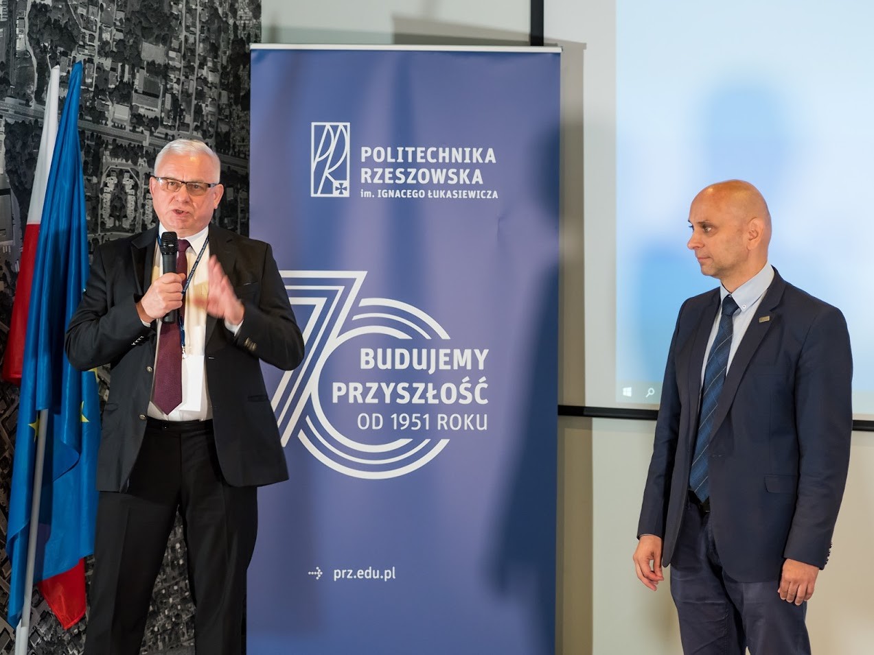 Dziekan WBMiL prof. PRz Adam Marciniec podkreślił, że Politechnika Rzeszowska jako jedna z pierwszych w Polsce rozpoczęła działalność naukową w obszarze druku 3D. „Rzeszów jest właściwym miejscem do organizacji takiej konferencji, bo dokładnie 20 lat temu w Katedrze Konstrukcji Maszyn Politechniki Rzeszowskiej została zainstalowana, jako trzecia w Polsce po Politechnice Wrocławskiej i rzeszowskiej firmie Zelmer, aparatura do stereolitografii firmy 3D Systems. Wtedy też w katedrze rozpoczęto prace badawcze nad technologiami przyrostowymi, które są ściśle powiązane ze współpracą z przemysłem w tym zakresie. Ta współpraca jest niezmiernie istotna. Stąd koncepcja, aby konferencja stanowiła platformę wymiany wiedzy pomiędzy przedstawicielami nauki, przemysłu oraz otoczenia społeczno-gospodarczego” – mówił prof. PRz A. Marciniec. Dziekan WBMiL przedstawił również miejsce nowoczesnych technologii przyrostowych, szczególnie w odniesieniu do przemysłu lotniczego i kosmicznego.