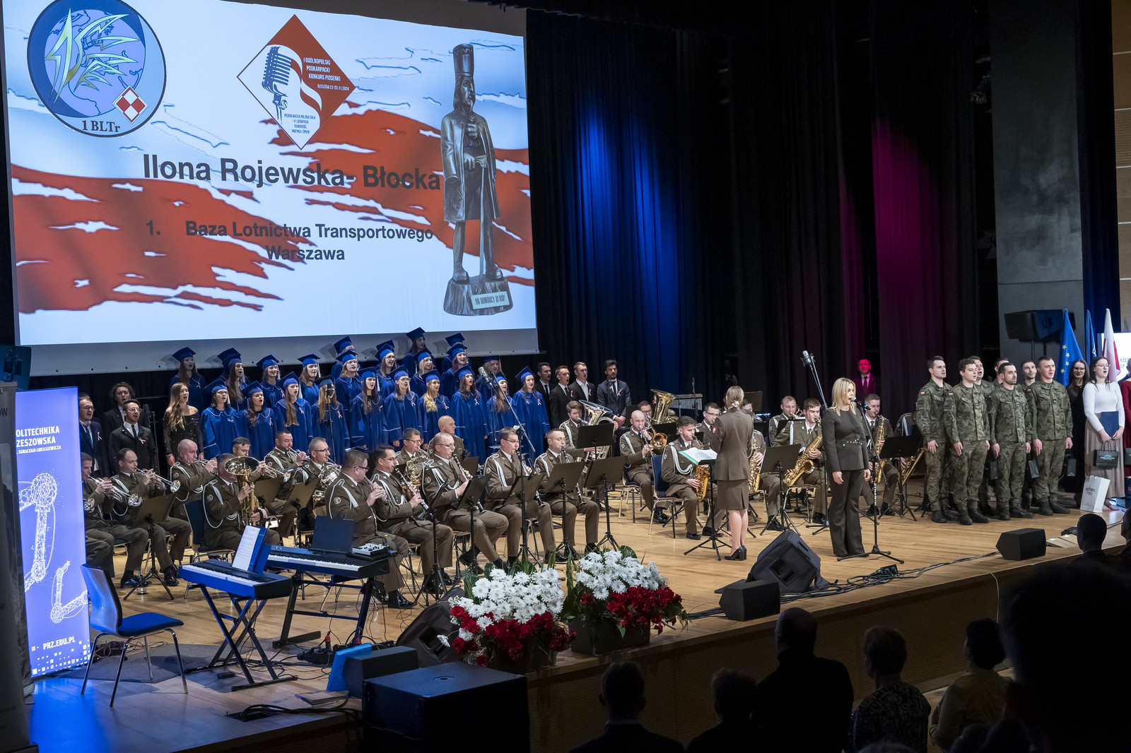 Koncert rozpoczął Chór Akademicki Politechniki Rzeszowskiej hymnem dla Podkarpacia „Podkarpacka ziemia” (autor tekstu i kompozytor Tadeusz Urban, akompaniament – fortepian Lidia Chalińska, skrzypce Przemysław Czekaj), oddając tym samym hołd naszej małej Ojczyźnie – Podkarpaciu. Prowadzący koncert chórzystka Paulina Sitnik i kpt. Mariusz Pass opowiedzieli o najnowszej historii Polski, w co wplecione były kolejne pieśni „Bywaj dziewczę zdrowe” z powstania listopadowego oraz „Legiony” z 1918 r.