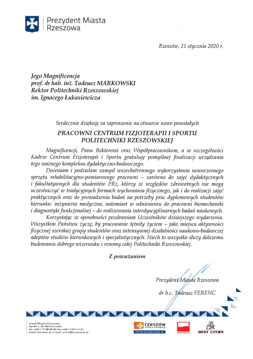 Podstrona: Otwarcie nowej pracowni Centrum Fizjoterapii i Sportu / POLITECHNIKA RZESZOWSKA im. Ignacego Łukasiewicza