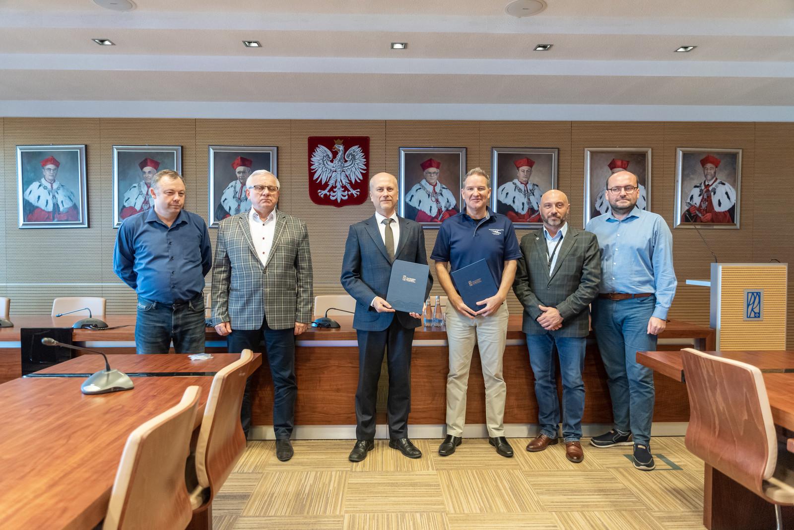 W spotkaniu udział wzięli: prorektor ds. rozwoju i współpracy z otoczeniem prof. dr hab. inż. Jarosław Sęp, dziekan Wydziału Budowy Maszyn i Lotnictwa dr hab. inż. Adam Marciniec, prof. PRz, kierownik Katedry Awioniki i Sterowania dr hab. inż. Tomasz Rogalski, prof. PRz, dyrektor Ośrodka Kształcenia Lotniczego dr inż. Arkadiusz Rzucidło, dr inż. Jerzy Bakunowicz oraz Steve Ursell, dyrektor Międzynarodowego Programu Lotniczego (Head of International Aviation Program) Northwestern Michigan College.