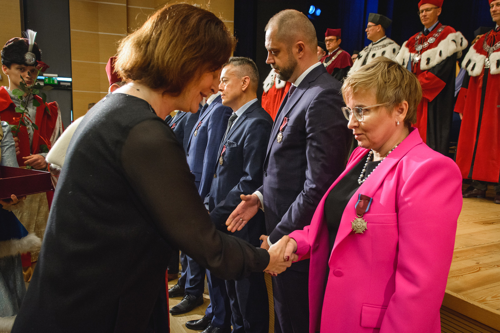 Odznaczenia wyróżnionym wręczyła wojewoda podkarpacki dr Ewa Leniart w towarzystwie rektora Politechniki Rzeszowskiej prof. dr. hab. inż. Piotra Koszelnika.
